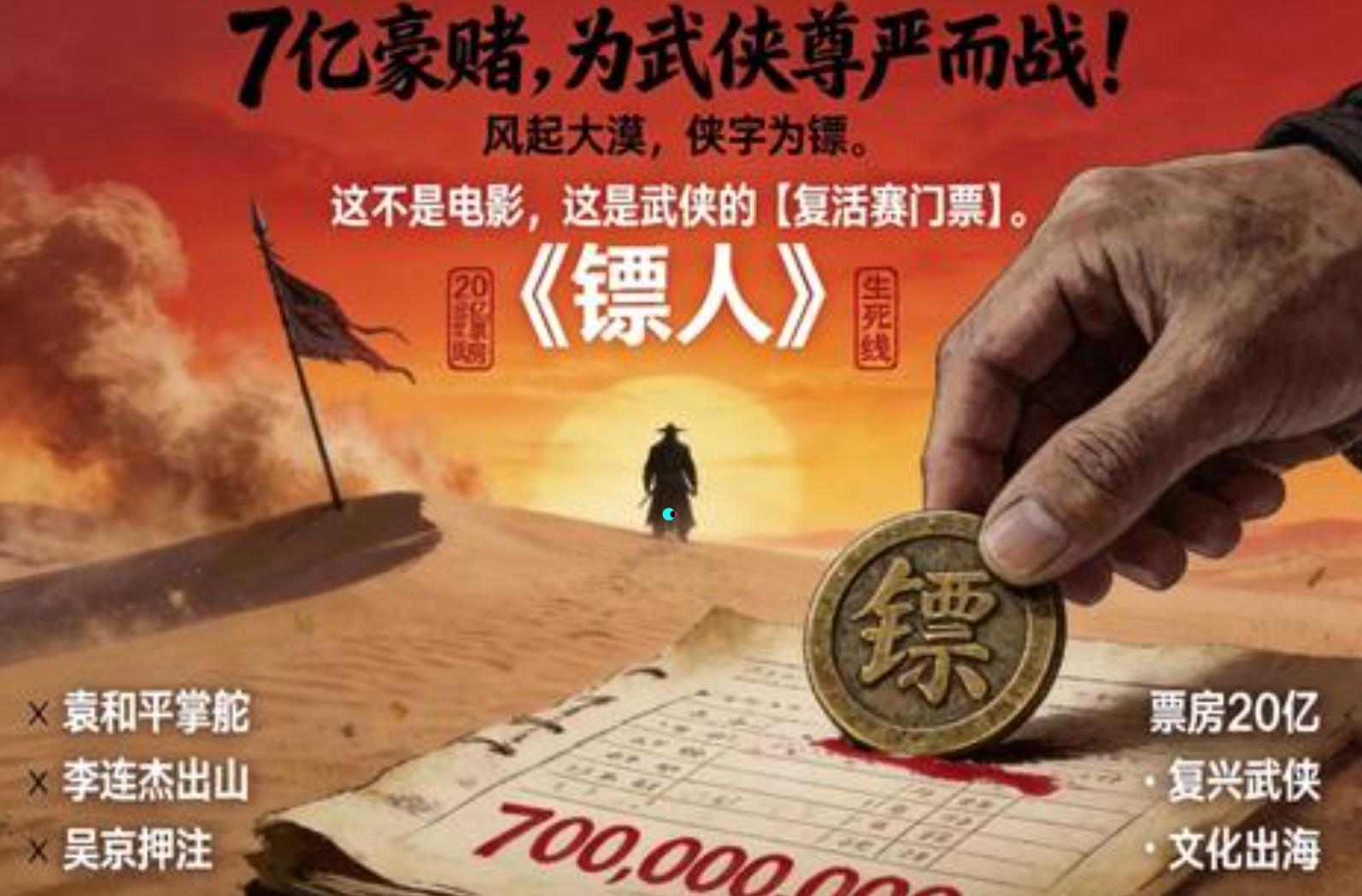 大家都知道,《镖人》最初的盘子是袁和平的一张召集令,把吴京、李连杰、谢霆锋等一众“武林人士”召集到一起,半帮半演攒了这样一部电影。