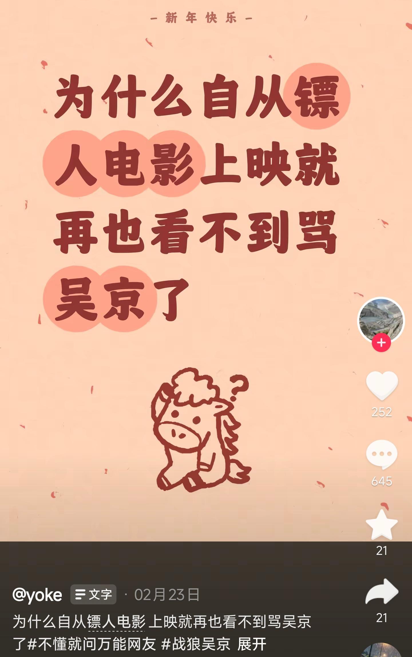 网友突然发现,随着《镖人》口碑发酵,吴京没人黑了,电影也没人骂了。