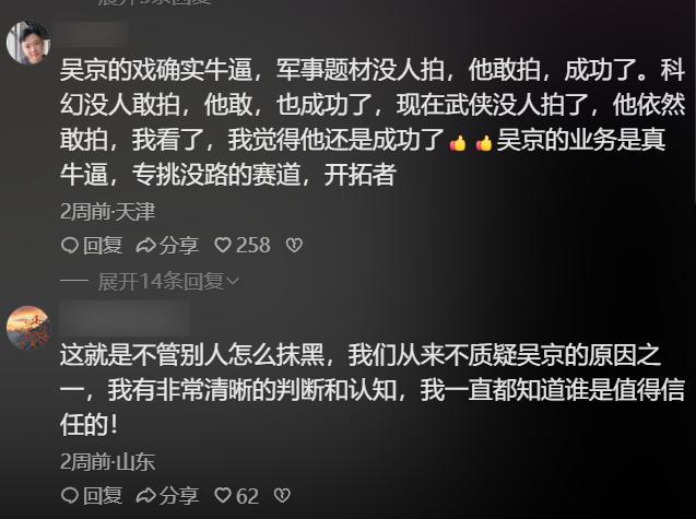 他全天24小时不休息帮吴京宣传,怒刷30多条宣传稿,甚至带着全剧组拉横幅为吴京站台。
